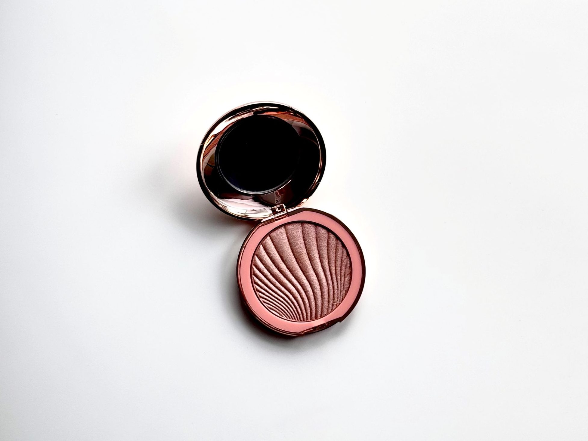 Już samo opakowanie przyciąga wzrok. Złota kasetka z subtelnym, falującym tłoczeniem sprawia, że kosmetyk prezentuje się elegancko i bardzo estetycznie. To jeden z tych produktów, które aż chce się wyciągnąć z torebki i poprawić makijaż w ciągu dnia 😉